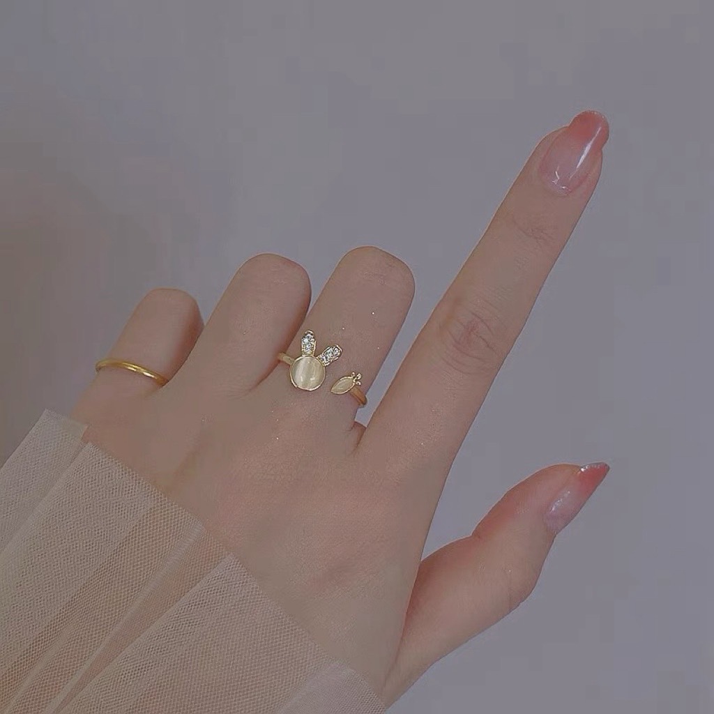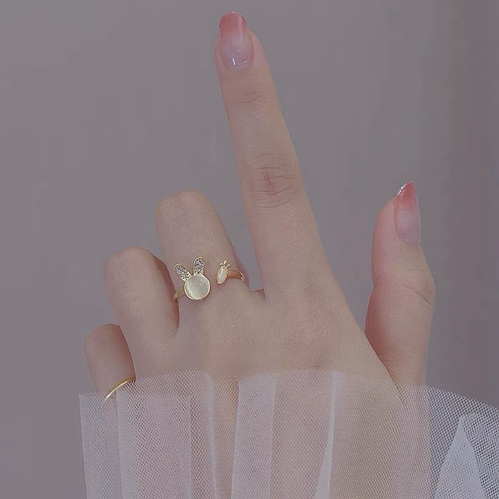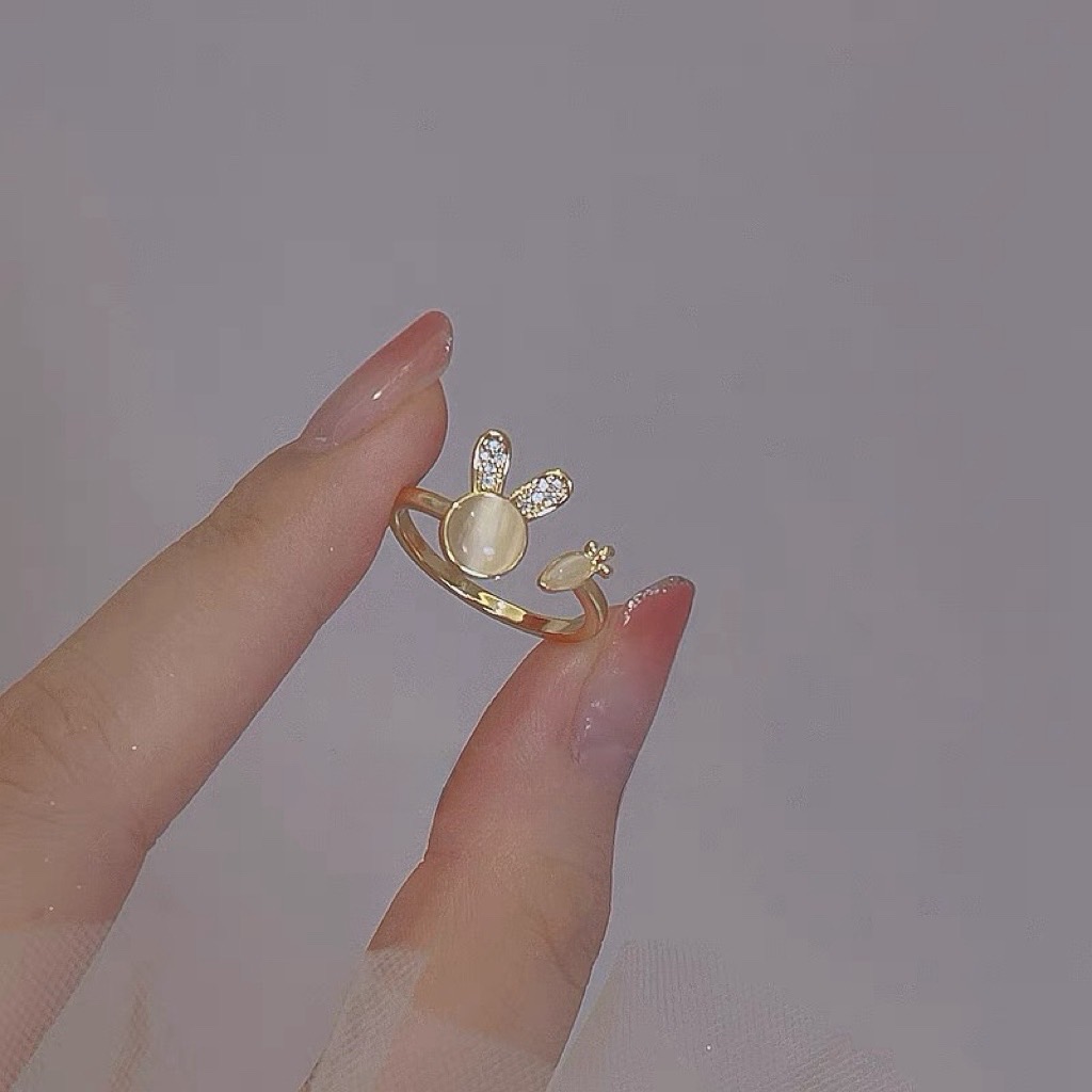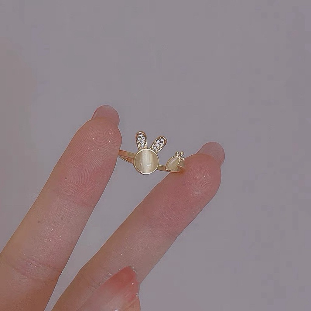 可愛貓眼石小兔子造型戒指
