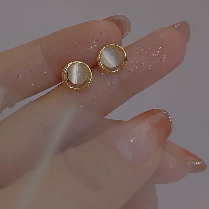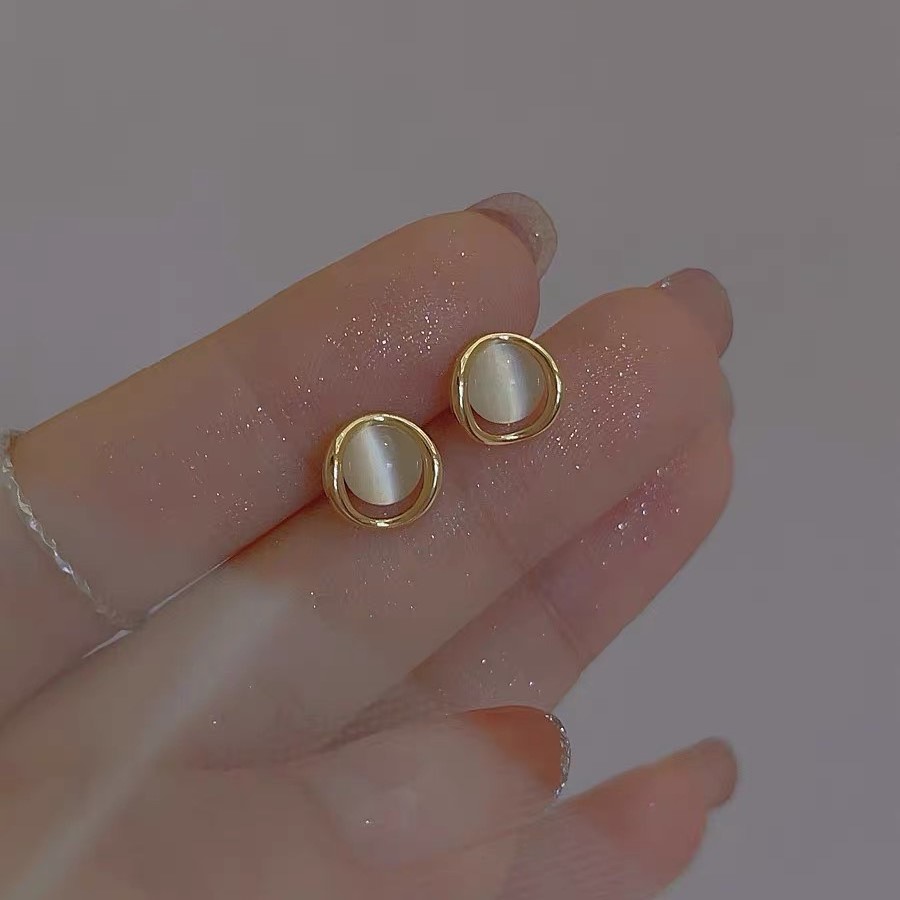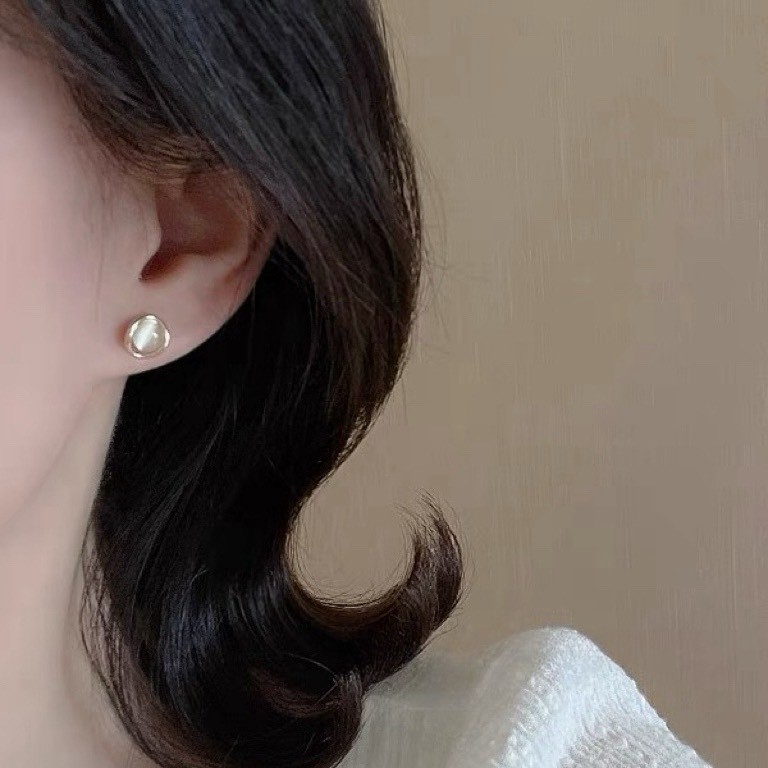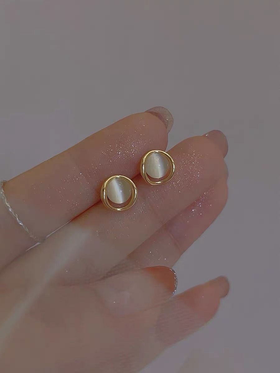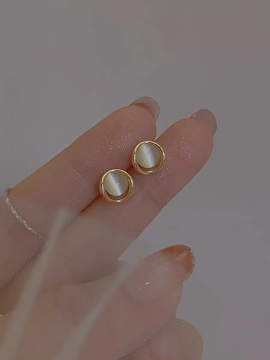 小巧簡約貓眼石925純銀耳釘