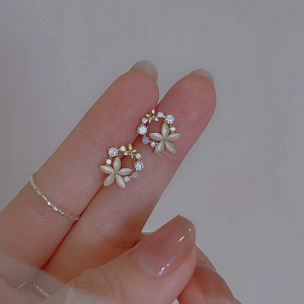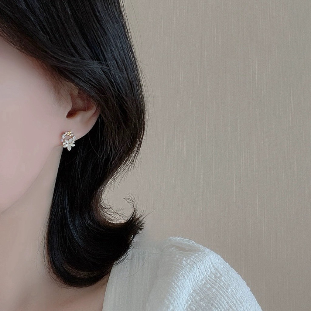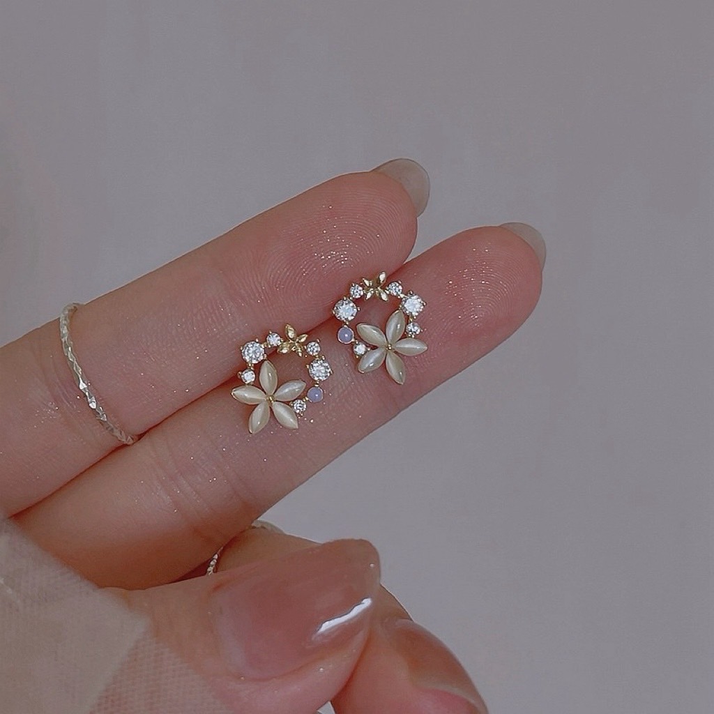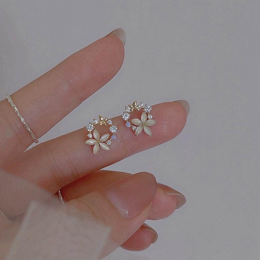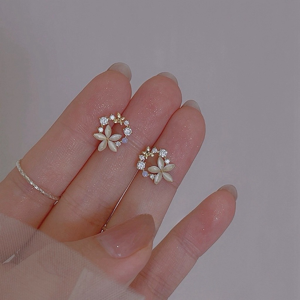 精緻輕奢貓眼石花環925純銀耳釘