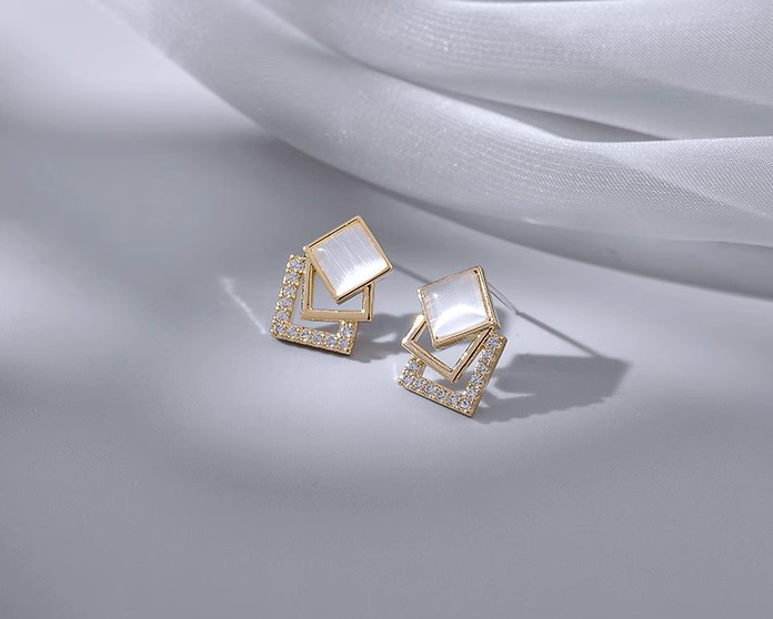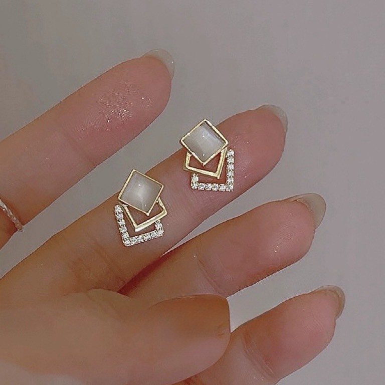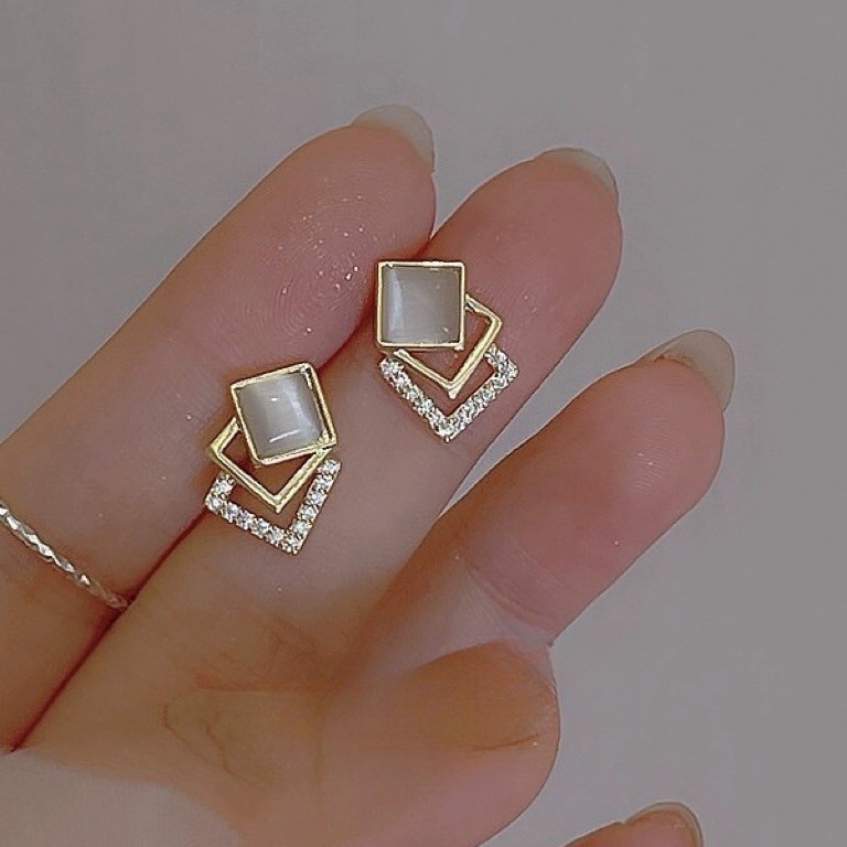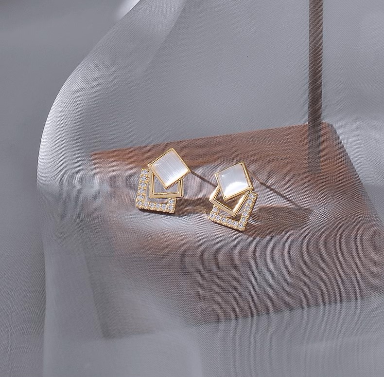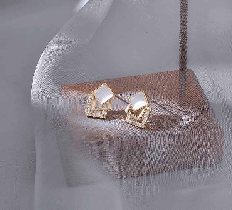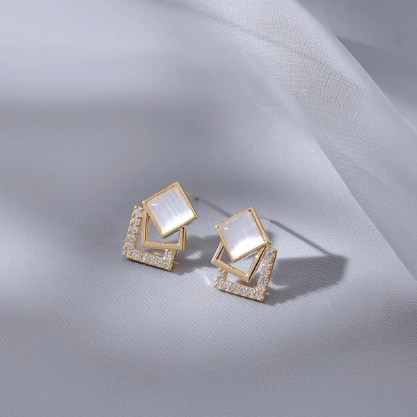 高級簡約貓眼石幾何方形925純銀 ...