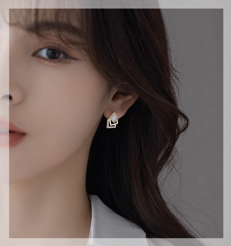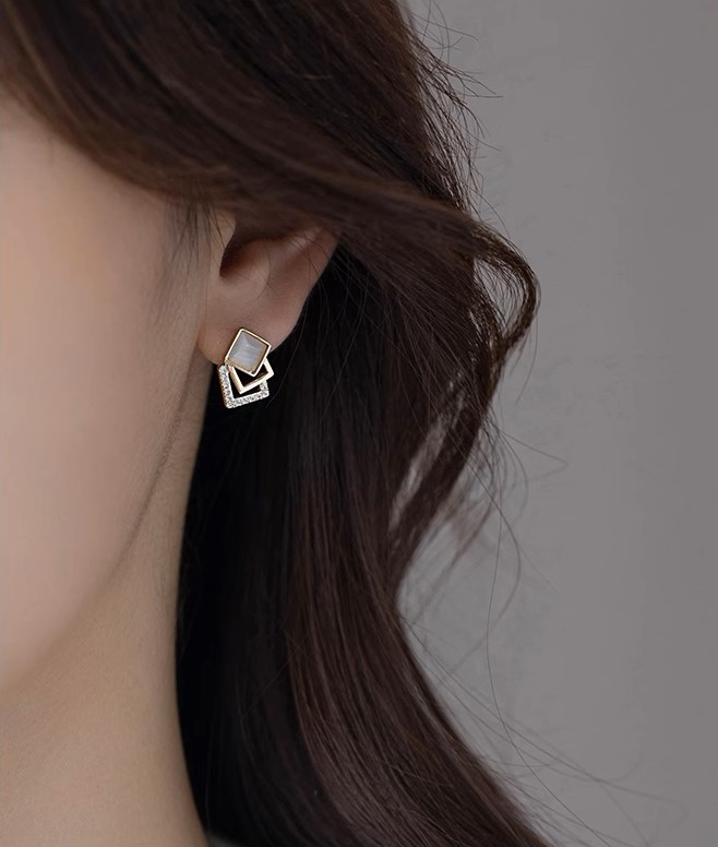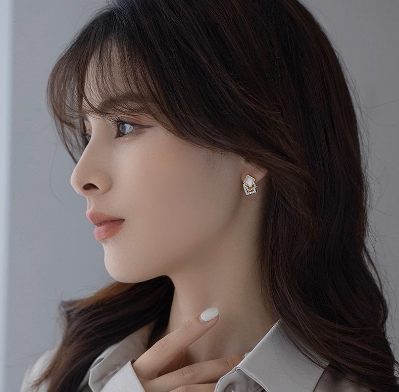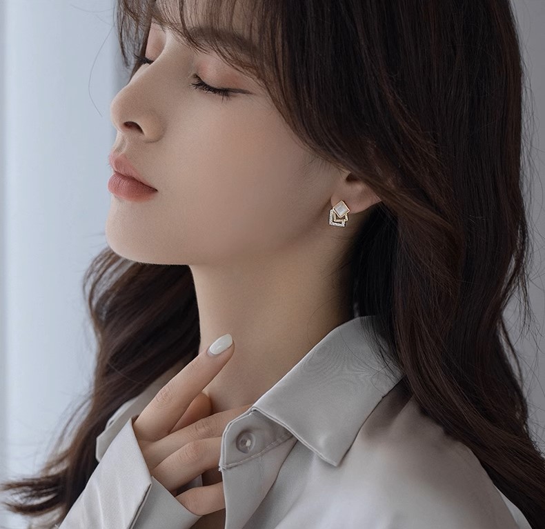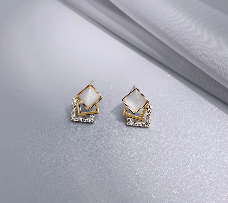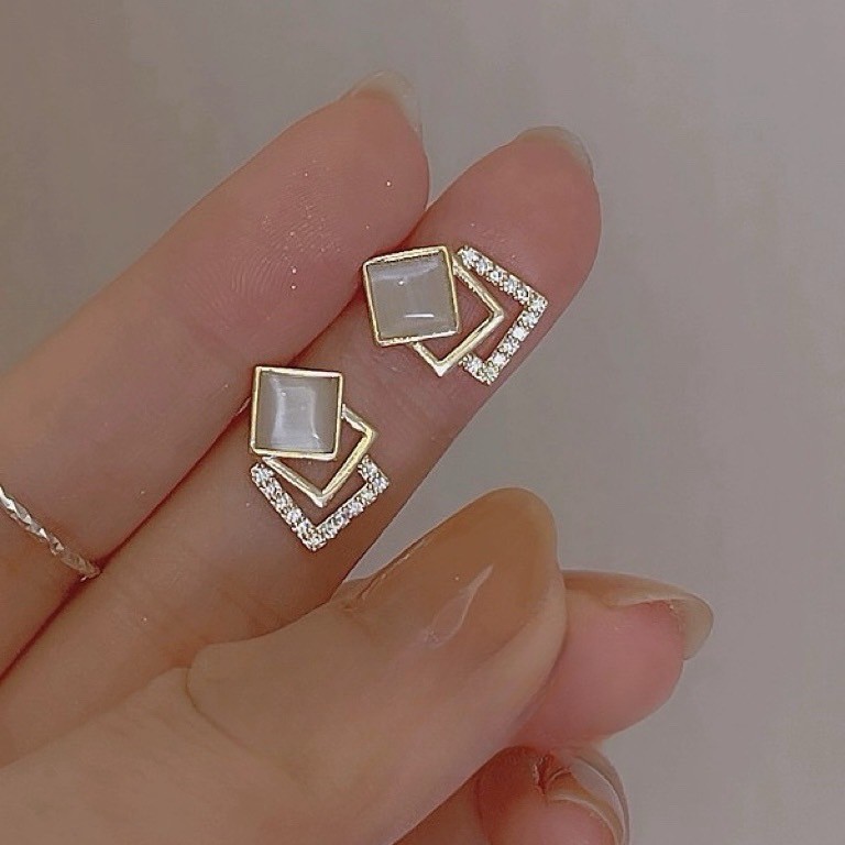 高級簡約貓眼石幾何方形925純銀 ...