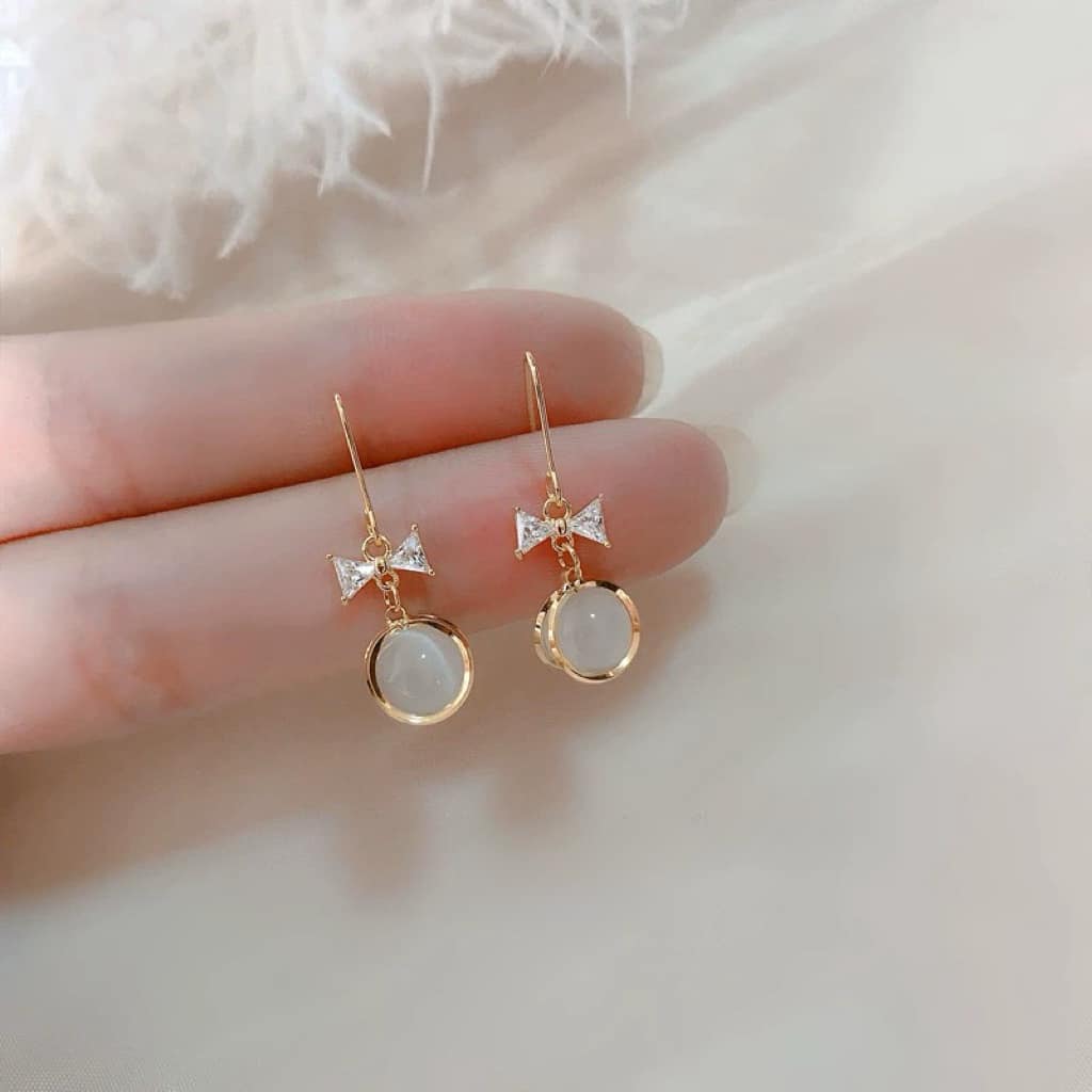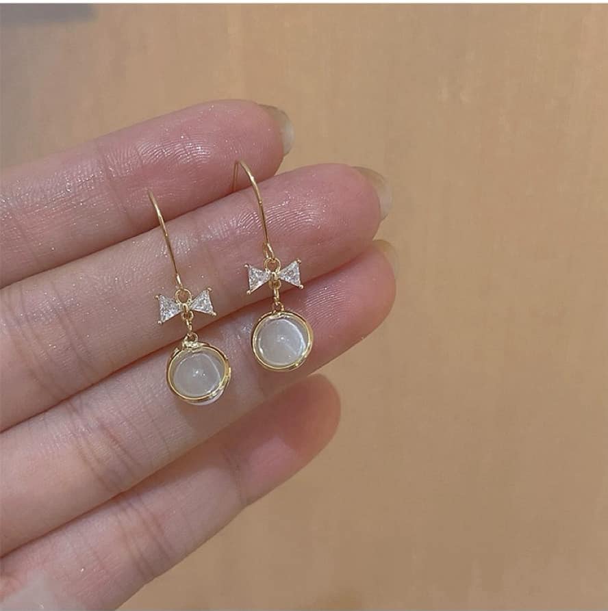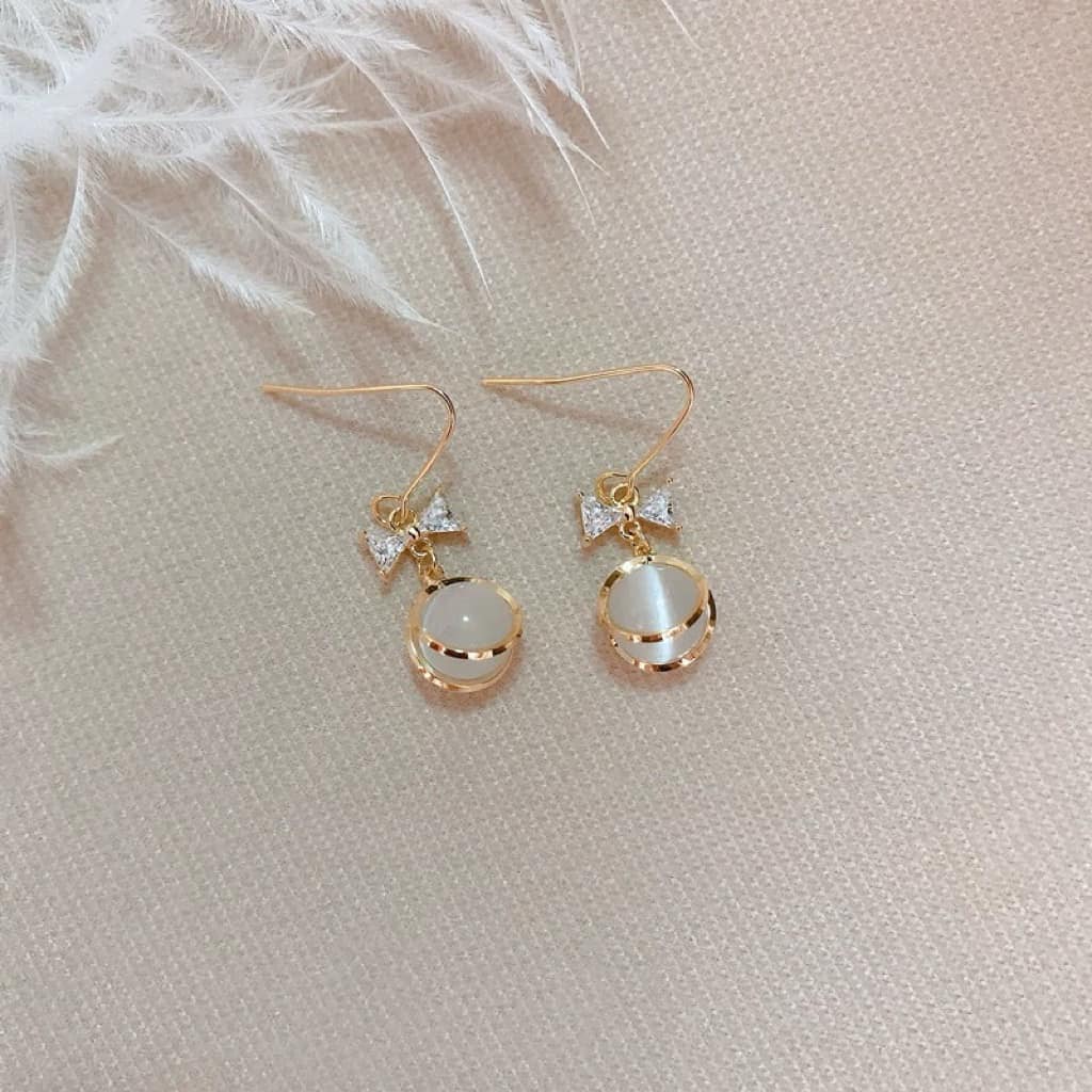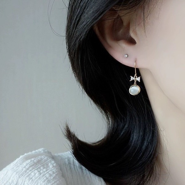 氣質貓眼石蝴蝶結垂墜耳鉤