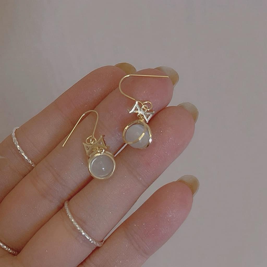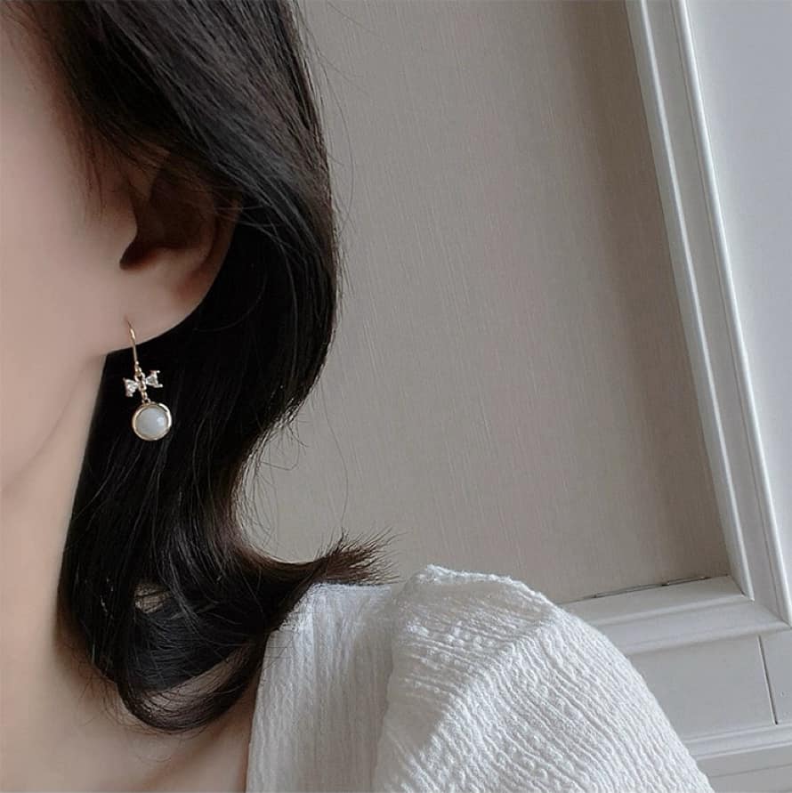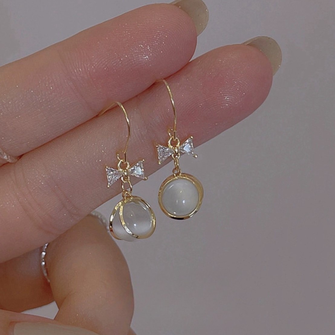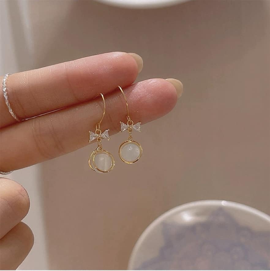 氣質貓眼石蝴蝶結垂墜耳鉤